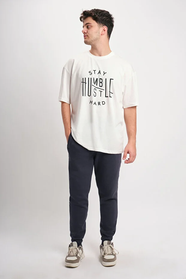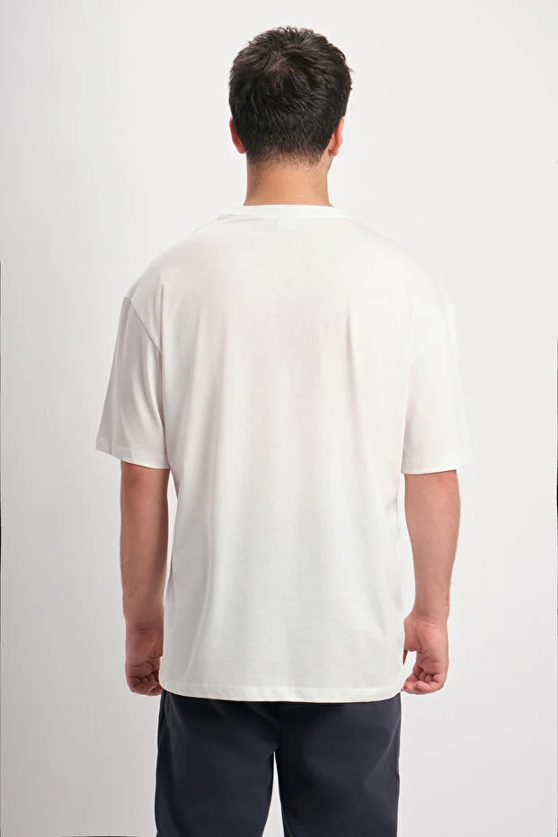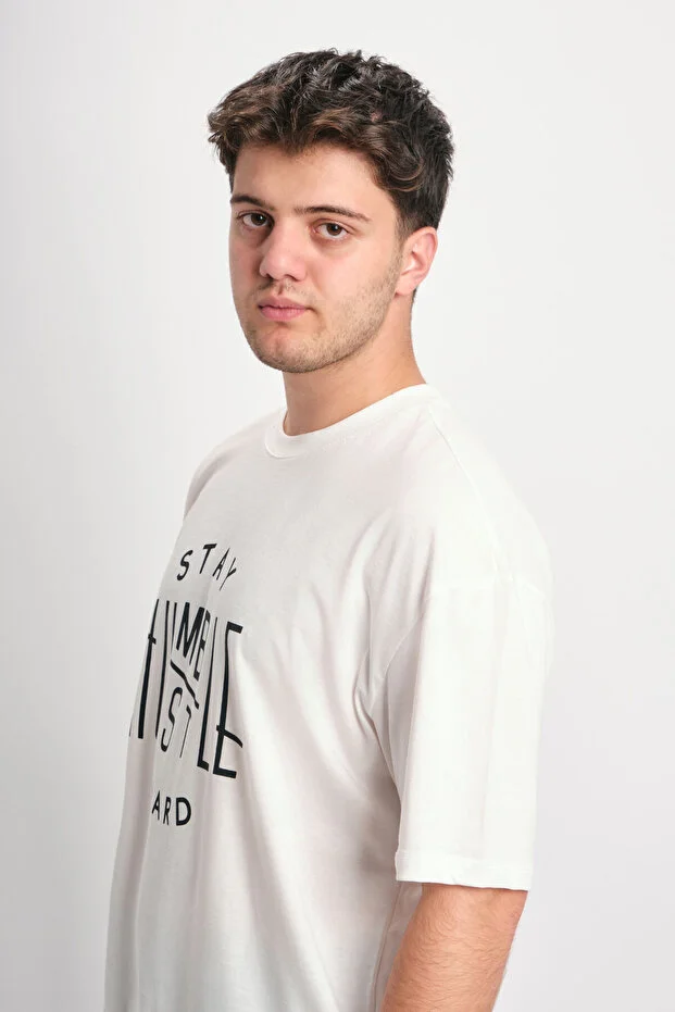 Beyaz 100% Pamuk Baskılı Oversize Geniş Kalıp Tişört