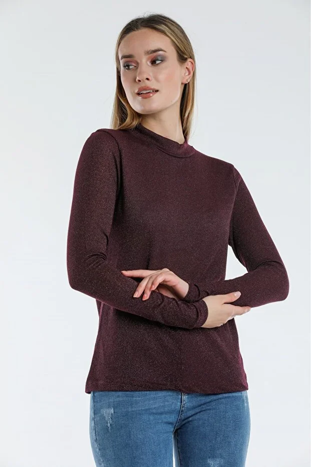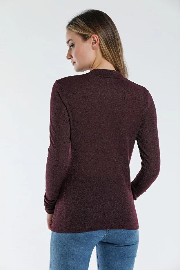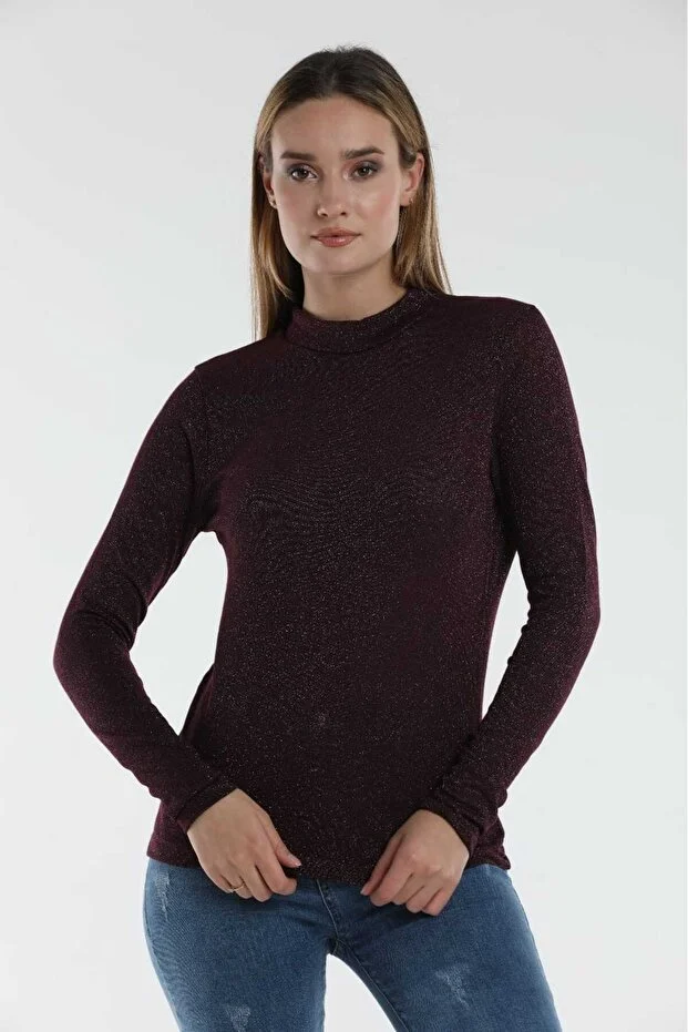 Bordo Kadın Simli Basic Triko Body İnce Kumaş
