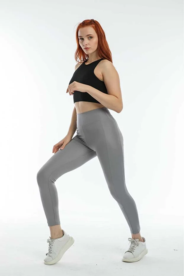 Gümüş Kadın Yüksek Bel Toparlayıcı Tam Boy Spor Tayt