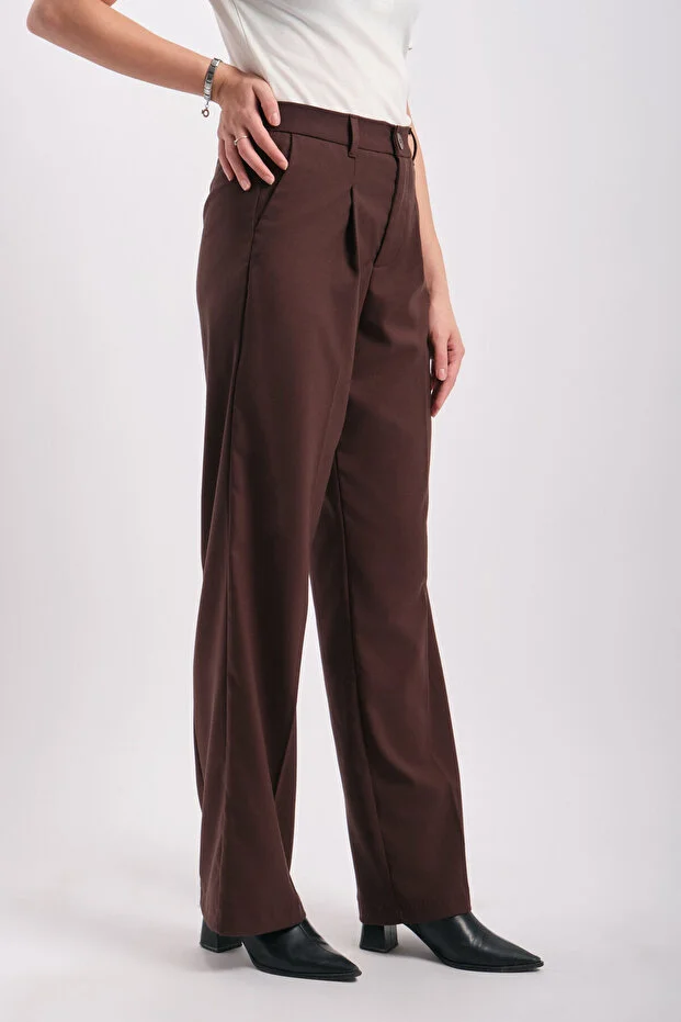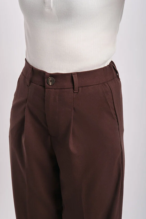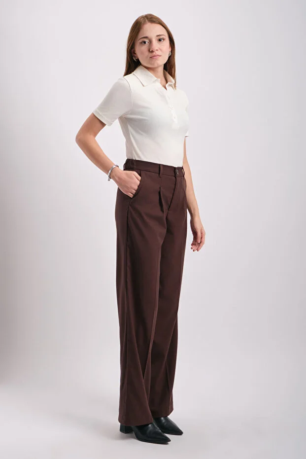 KADIN PİLELİ VE BEL LASTİKLİ DOKUMA PANTOLON GENİŞ PAÇA