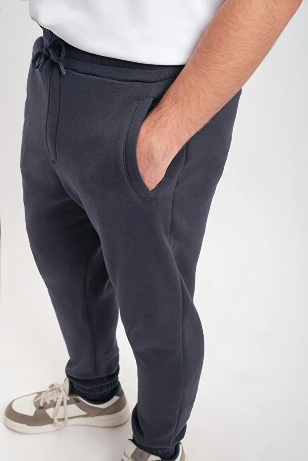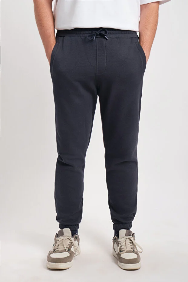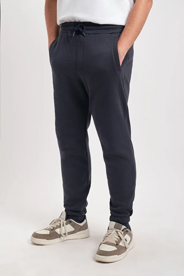 Lacivert Erkek Cepli Paça Lastikli Rahat Kesim Yumuşak Doku Şardonlu Alt Eşofman
