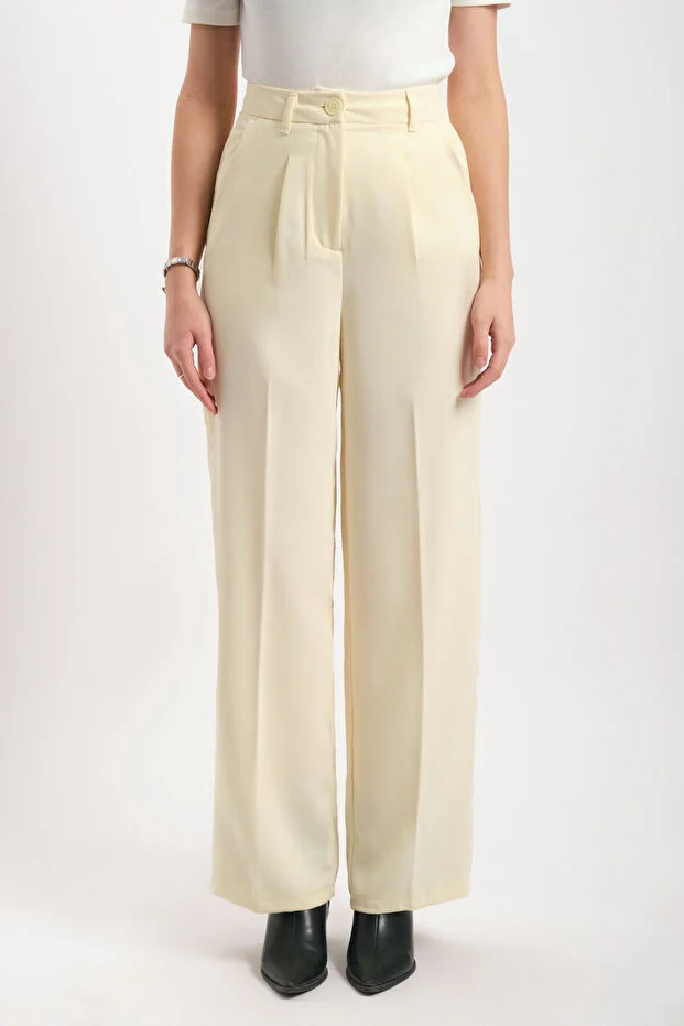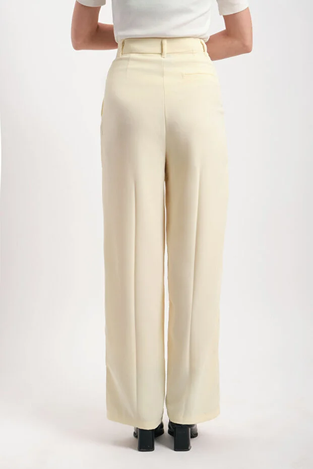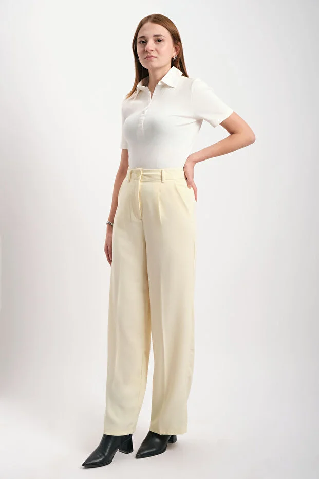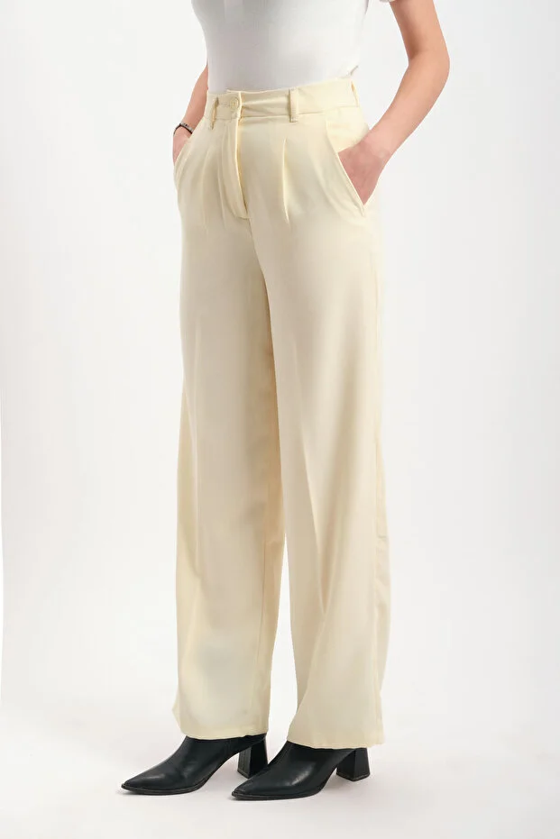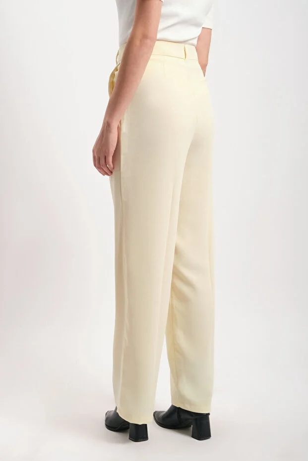 Sarı Yüksek Bel Geniş Paça Krep Kumaş Pantolon