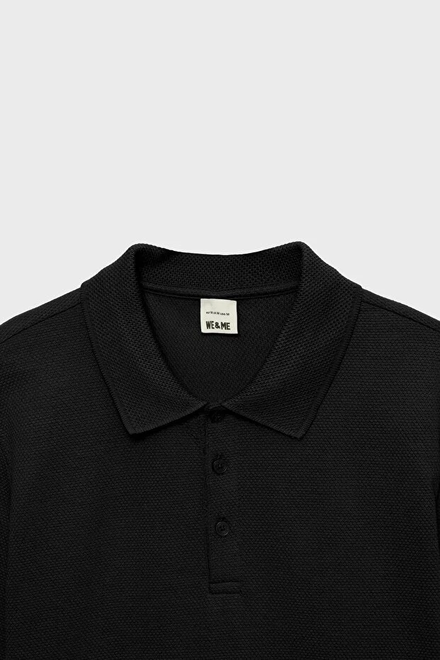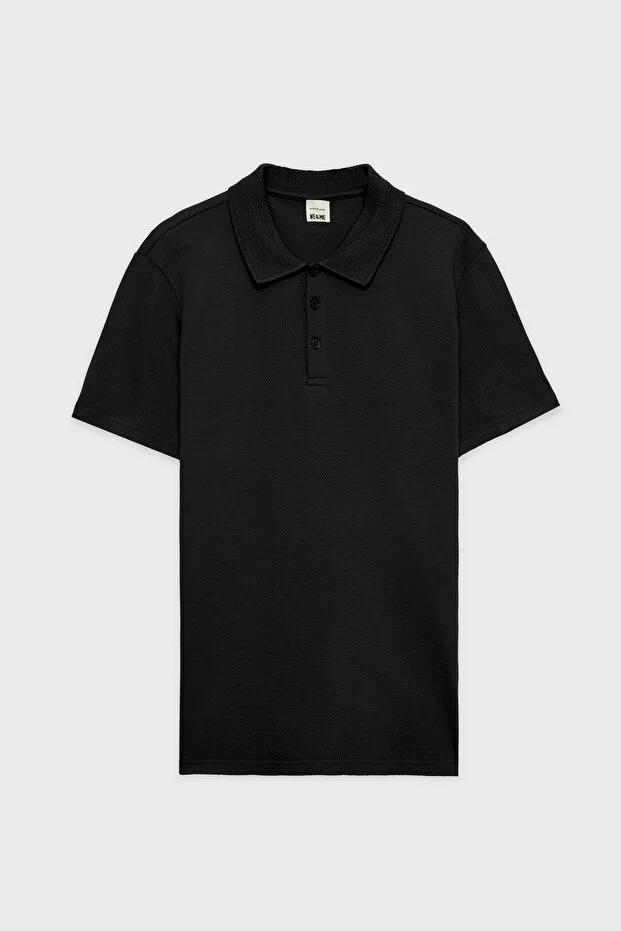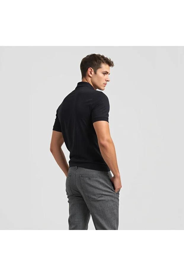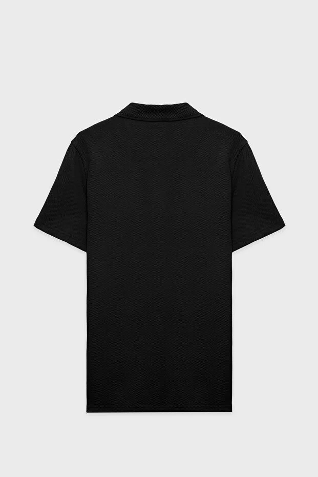 Siyah Slim Fit Pamuklu Basic Kısa Kol Polo Yaka
