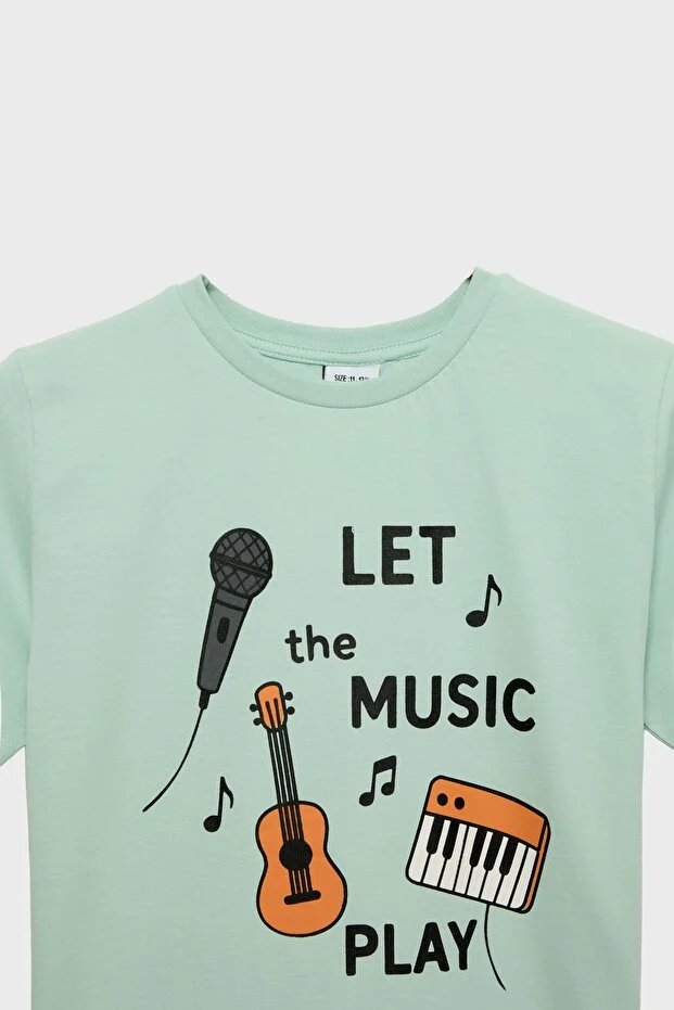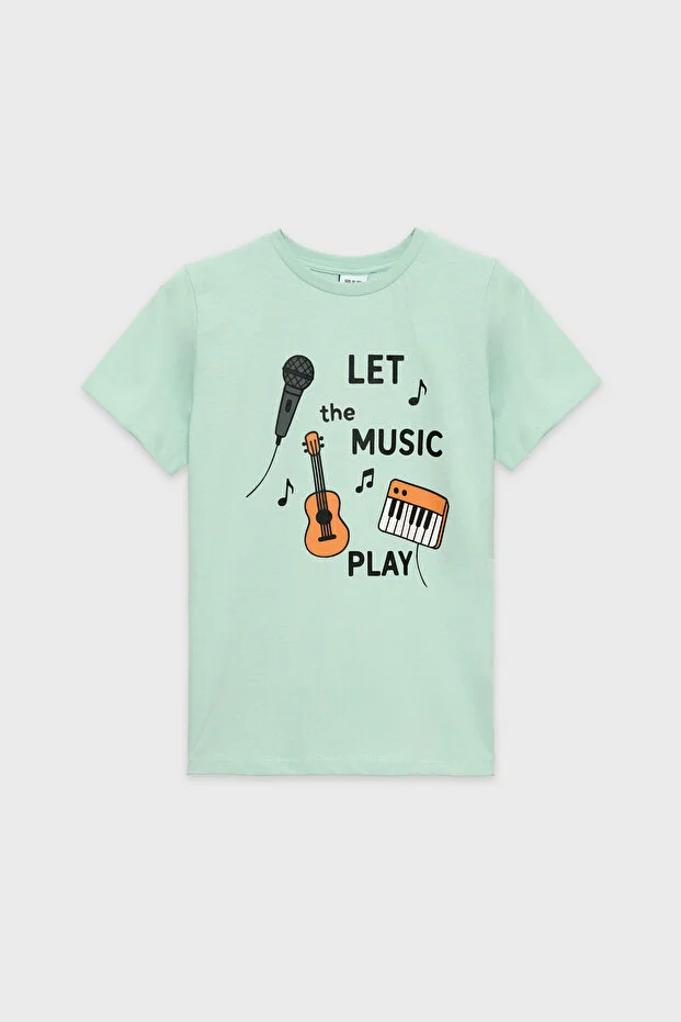 Yeşil Ön Baskılı Erkek Çocuk T-Shirt